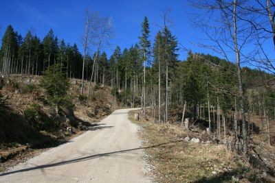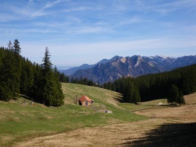 Für den Abstieg wählen wir zunächst den Fahrweg hinab. Wir treffen auf den Weg von den Asten und gehen ein Stück bis zur 90°-Rechtskurve. Dort wählen wir den Pfad gerade aus, folgen diesem Weg und biegen nun ein paar Mal rechts und links ab, bis den Wagnerberg erreichen. An diesem vorbei wird der Weg steiniger und nach weiteren 15 Minuten ist Flintsbach fast erreicht. Mit Blick auf den Heuberg geht es nun zum Ausgangspunkt zurück.