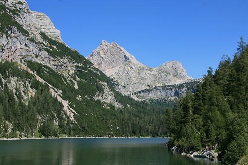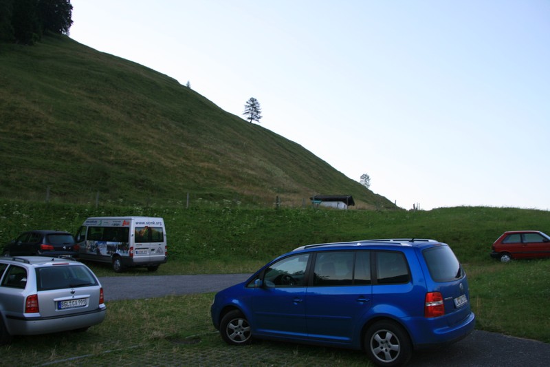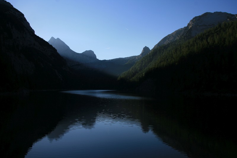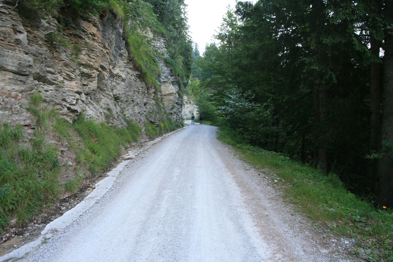 Am Parkplatz geht es kurz auf der Straße an der Schranke vorbei, ehe links ein Bergsteig links den Hang hinauf führt. Bald wieder auf der Straße geht es mäßig steil durch den Wald bergauf. Mit dem Hochkranz links und Seehorn vor einem erreicht man die Kallbrunnalm samt Einkehrmöglichkeit. An dieser vorbei geht es nun wieder bergab und nach ein paar Minuten rechts zum Stausee hinab.
