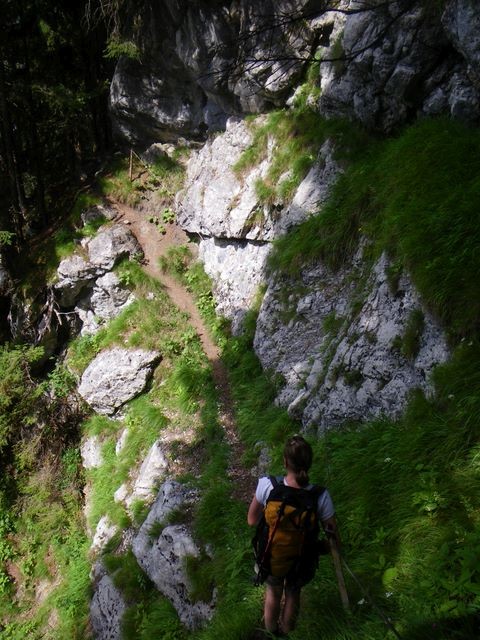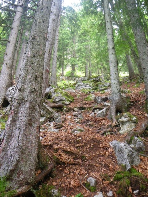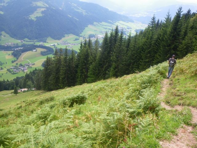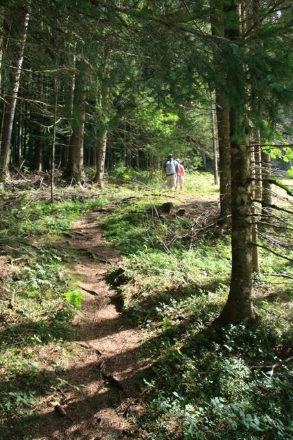 Der Rückweg erfolgt über die Reiteralm. Dazu geht es wieder zurück auf den Sattel zwischen Großem und Kleinen Pölven. Über einen Waldpfad ist die Weidefläche bald zu sehen. Nachdem das steilste beim Abstieg geschafft ist gehen wir auf dem Fahrweg bis Steintal hinab. Auf dem Pölvenweg folgt nun ein Hatscher zurück zum Auto. Dabei müssen noch einmal circa 150 Höhenmeter im Gegenanstieg bewältigt werden.