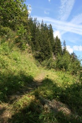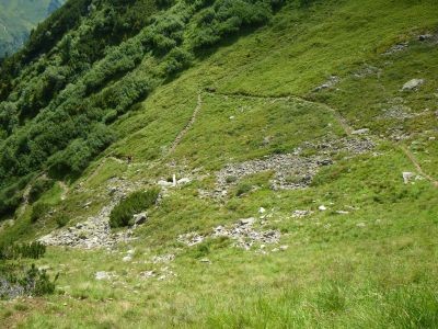 Wir starten die Tour am großen Parkplatz und gehen kurz auf der Straße, bis der Weg rechts an der Materialseilbahn vorbei führt. Hinter der Brücke über den Gschnitzbach gehen wir bald rechts in den Wald. Der Wanderweg führt nun schattig bis zu einer Forststraße. Diese queren wir und steigen auf dem Pfad nun deutlich steiler in endlosen Kehren bergauf. Dabei ändert sich mit zunehmender Höhe dir Vegetation deutlich. Nach einer gefühlten Ewigkeit öffnet sich die Schneise etwas und wir queren nach Norden auf die große Fläche anderen Ende man schon die Innsbrucker Hütte sieht. Zu dieser geht es nun deutlich flacher hinauf.