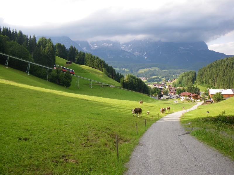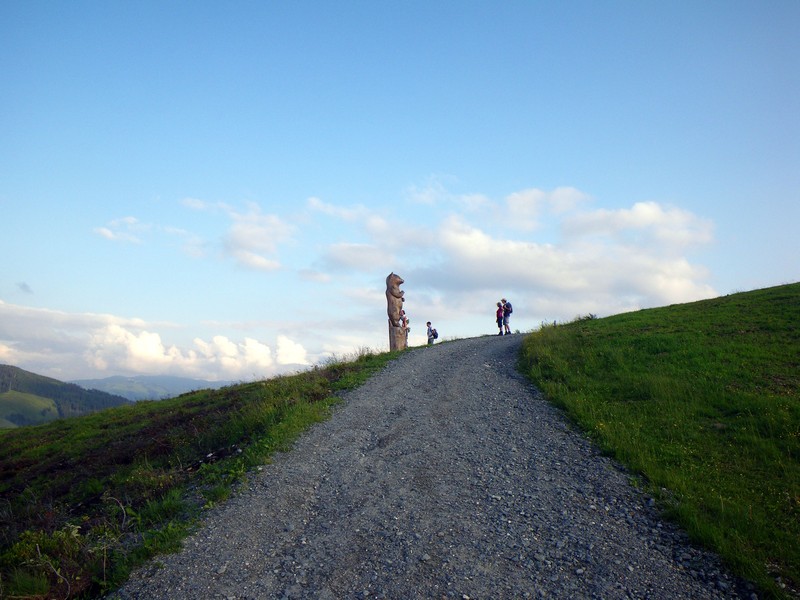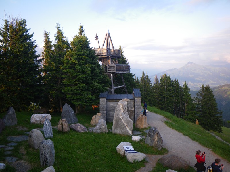 Kurz danach zweigt links der Rübezahlweg links ab. Dabei geht es etwas steil in einigen Kehren bergauf, bis erneut der breite Fahrweg erreicht wird, dem man nun vorbei an der Jägeralm bis zur Bergstation hinauf folgt. Hier besteht noch die Möglichkeit dem Stoamandlweg zum höchsten Punkt des Hartkaisers zu folgen und vom Aussichtsturm das Panorama zu genießen.