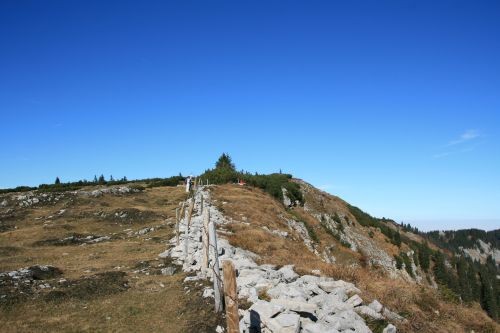 Am Gipfelkreuz dem Pfad nach Norden folgen, bis der Predigtstuhl erreicht wird.