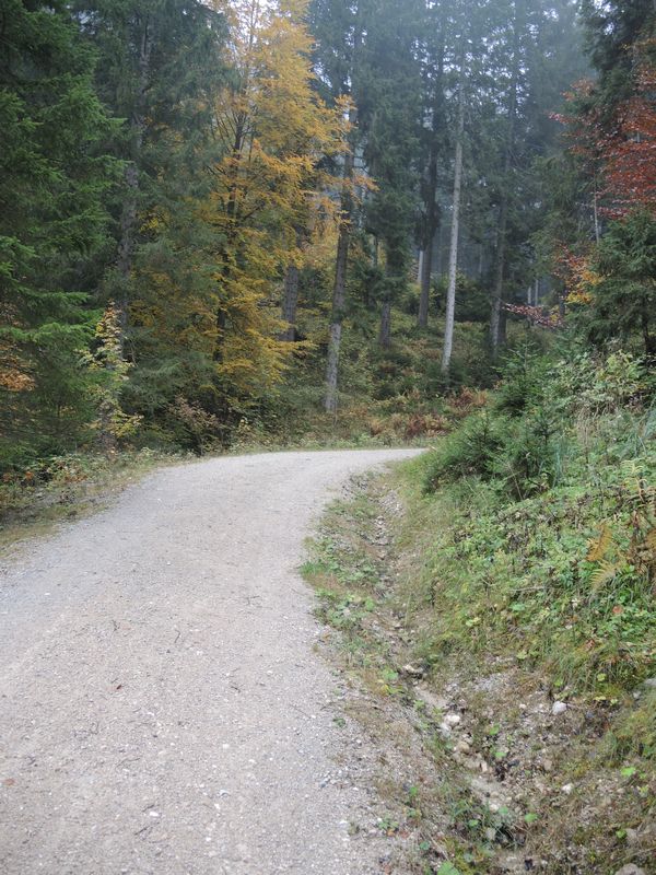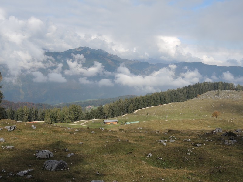 Der Rückweg erfolgt auf direktem Weg zum Gasthaus Schneeberg. Dazu gehen wir an der Wegverzweigung nahe dem Gipfelkreuz links Richtung Hundsalmjoch, verlassen diesen Weg aber gleich wieder nach links Richtung Köglalm. Durch den Wald steigen wir auf einem Waldpfad bergab bis die Weiden der Köglalm erreicht werden. Zu dieser ist es dann nicht mehr weit. Unter den Hütten führt ein Schotterfahrweg Richtung Thiersee/Schneeberg. Immer diesen Beschilderungen folgend verlieren wir allmählich wieder an Höhe, wobei kurz vor dem Ausgangspunkt noch 2 kleine Gegenanstiege an einem Wasserfall warten.