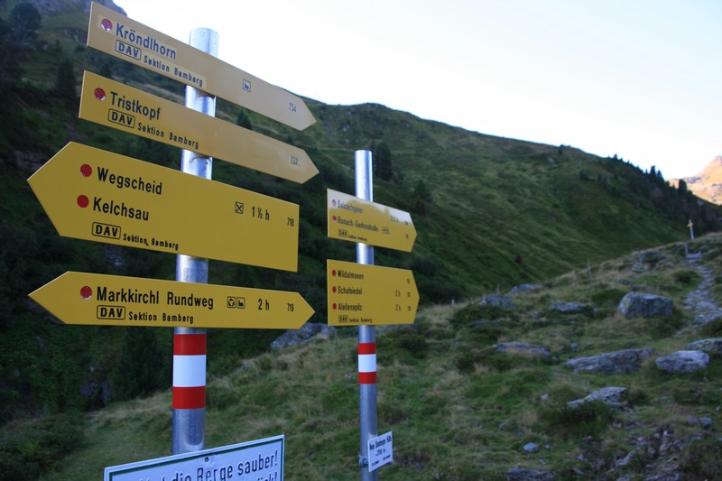 Information: Dieser Tourenbericht behandelt nur den Aufstieg ab der Bamberger Hütte. Startet man im Tal beim Gasthaus Wegscheid hat die Tour folgende Daten: 1310 Höhenmeter, 8 Kilometer (einfach) und circa 4 Stunden Aufstieg bzw. 2,75 Stunden Abstieg.