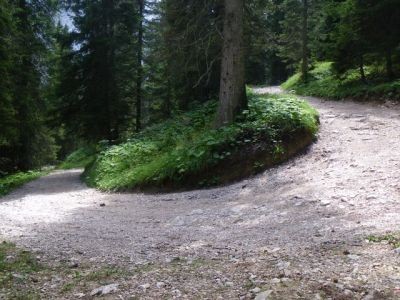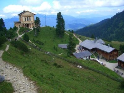 In Elmau geht es zunächst am Bach entlang den Wegweisern folgend den Schachenweg hinauf. Dabei bleiben wir immer auf dem breiten Forstweg. An unklaren Weggabelungen ist meist ein Schild angebracht. Bei den Massen, die zu Ludwigs Jagtschloß (wenn man es denn so nennen möchte) hinauf strömen sollte der Weg alleine durch die vielen Menschen klar sein. Bis zur Wettersteinalm fahren wir auf einem breiten Forstweg. Danach geht es auf groberem Untergrund in Serpentinen um den Steilenberg. Nach ein paar flacheren Stücken folgt in Sichtweite des Ziels der letzte Bogen vorbei am Alpengarten und dem Unterkunftshaus zum kleinen Schloß.