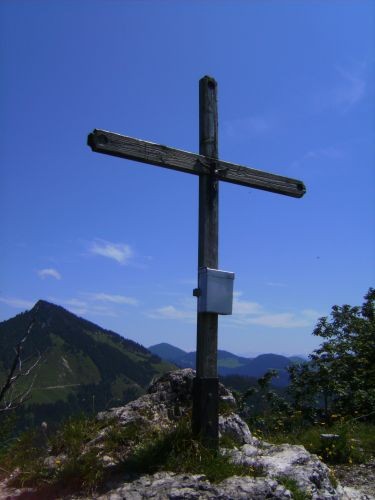 Los geht es am Kranzhornparkplatz. Wir gehen gleich rechts auf den Forstweg und in der 4. Spitzkehre gehen wir gerade aus. Wenn man diesem Weg folgt erreicht man bald die Baster-Alm. An den Kühen gehen wir vorbei und halten und rechts. Dem Feldweg folgen wir bis zu einem Kreuz. Wir gehen unter ihm vorbei und bald beginnt der knifflige Teil, da es auf den Pasterkopf keinen ausgeschriebenen Weg gibt. Jetzt ist Orientierung gefragt. Wir gehen noch ein Stück auf den Weg, an der Absperrung vorbei und stoßen bald auf einen Pfad. Diesem folgen wir nun bis zum kleinen Gipfel.