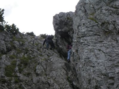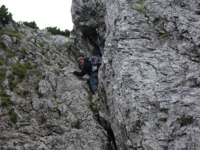 Auf den Buchstein ist es schwerer. Über leichte Kletterei (UIAA I-II) geht es zuerst über abgespeckten Fels hinauf auf den Vorgipfel. Von hier steigen wir noch einmal leicht auf, um die letzten Meter auf einem Bergsteig zum Gipfelkreuz zurückzulegen.