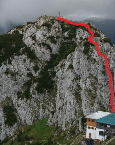 Von der Hütte geht es auf den Roßstein über den seilversicherten Grat nach Westen und über einen Bergsteig hinauf zum Gipfel. Manche Stellen sind gesichert; der Rest muss über Stein alleine geschafft werden.