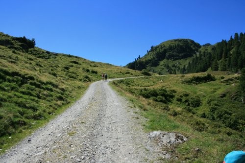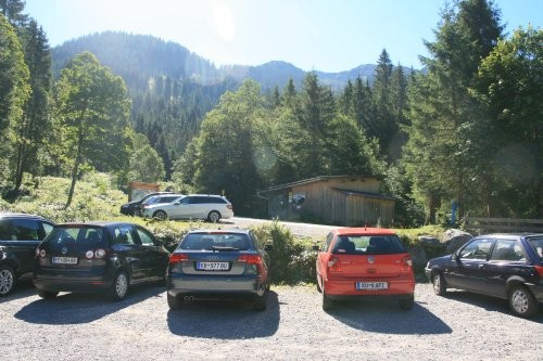 Die Tour beginnt am großen Parkplatz direkt gegenüber dem Gasthaus Wegscheid. Dort folgt man kurz dem breiten Weg taleinwärts bis dieser einen Linksknick vollzieht. Gerade aus weiter beginnt ein Wanderweg, dem wir nun folgen. Etwas über dem Bach gelegen bieten sich immer wieder imposante Blicke zu kleinen Wasserfällen und Gumpen. Der Weg bleibt immer auf der östlichen Bachseite. Abschüssige Stellen und Wasserläufe werden hierbei meist auf gut gesicherten Brücken gequert. Nach einer halben bis dreiviertel Stunde erreicht man eine breite Schotterstraße auf der es nun links kurz bergauf geht. Schon bald zweigt rechts ein Abürzer ab, der der Straße immer wieder kreuzt und somit einige Meter spart. Zwischen Schwarzbeersträuchern endet dieser auf circa 1.600 Metern. Das letzte Stück führt nun auf dem breiten Fahrweg weiter taleinwärts zu den Kuhwildalmen, von welchen die Neue Bamberger Hütte schon zu sehen ist. Jetzt wird endlich der Bach gequert und wenige Augenblicke später ist die Alpenvereinshütte erreicht.