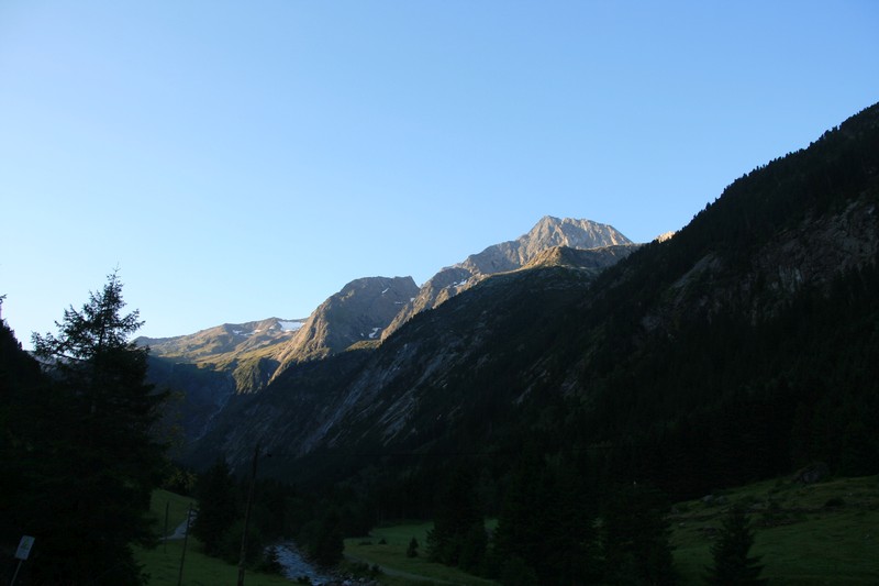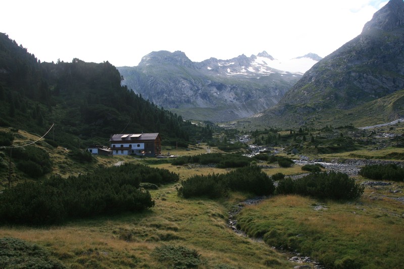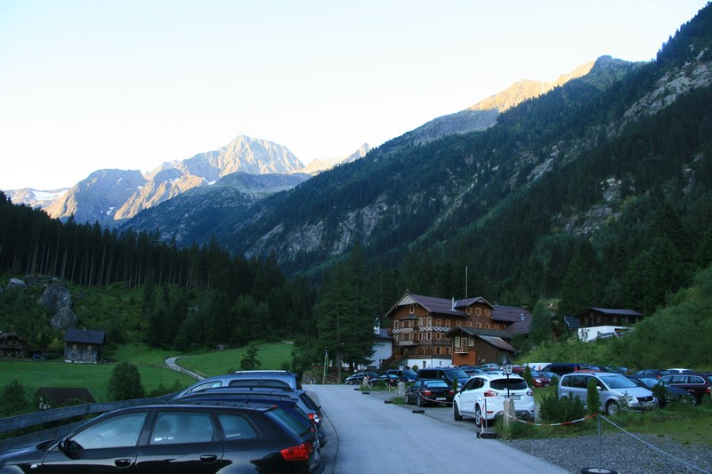 Beim Gasthaus Breitlahner folgt man dem beschilderten Forstweg links des Baches Richtung Grawahütte bzw. Berliner Hütte. Bald geht es an der Klausenhütte vorbei. Nur leicht steigend wandert man zunächst flach taleinwärts, was sich Schwemmalm allmählich ändert. Zur Grawahütte steigt man kurz steil auf, ehe es hinter dieser wieder flacher weiter geht. Weiterhin links des Baches gewinnt man mäßig an Höhe, ehe nach ungefähr zwei Stunden das Gasthaus Alpenrose nach minimalem Bergab erreicht ist.