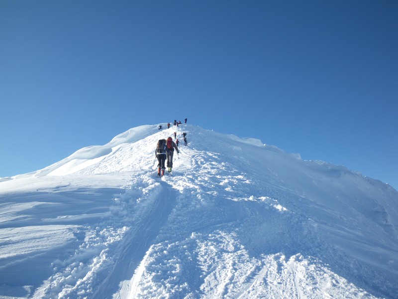 Es beginnt der letzte Teil des Aufstiegs: Nach einem noch mäßig steilem Stück wird es immer steiler, was kurz unterhalb des Gipfels einige Spitzkehren erfordert.