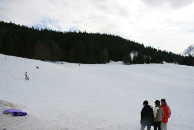 Vom Parkplatz steigen wir über die Piste nach Süden, bis am ersten wirklichen Hang ein seperater Aufstieg für Tourengeher abzweigt. Etwas nördlich der Piste gehen wir zuerst über einen Fahrweg und später zwischen Bäumen leicht hinauf, bis wir unterhalb des Restaurants die letzten Höhenmeter am Pistenrand aufsteigen. Der Weiterweg zum Toten Mann erfolgt nach Norden um die Bergstation durch eine kleine Senke. Von dieser geht es auf einem Fahrweg und später frei zum Höchsten Punkt, von welchem man die Aussicht auf den Watzmann und Hochkalter genießen kann. Der Rückweg zum Hirscheck erfolgt auf dem gleichen Weg. Ab dort erfolgt die Abfahrt auf der Skipiste.