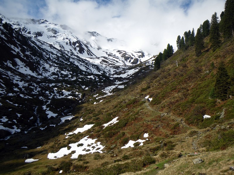 An der Tiefentalmalm wählt man zunächst den breiten Fahrweg, der taleinwärts führt. Der Weg schlängelt sich hier auf der westlichen Talseite meist nur leicht steigend hinauf. Folgt man dem Weg ohne größere Pausen ist die Oberkaralm und damit das Ende des Fahrweges nach einer dreiviertel Stunde in etwas erreicht.