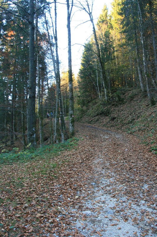 Vom Parkplatz bei Ettenberg folgt man zunächst dem Fahrweg Richtung Scheibenkaseralm. Nach einiger Zeit zweigt ein markierter Pfad ab, der ein Stück abkürzt. Mit zunehmender Höhe wird der Laubwald lichter und nach knapp zwei Stunden ist die Scheibenkaseralm erreicht. An dieser geht es rechts vorbei. Der Pfad führt weiter nach Norden und bald direkt an den Wandfuß des Klettersteigs. Dort legt man den Gurt am besten an und erreicht den Einstieg in wenigen Augenblicken.