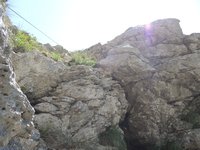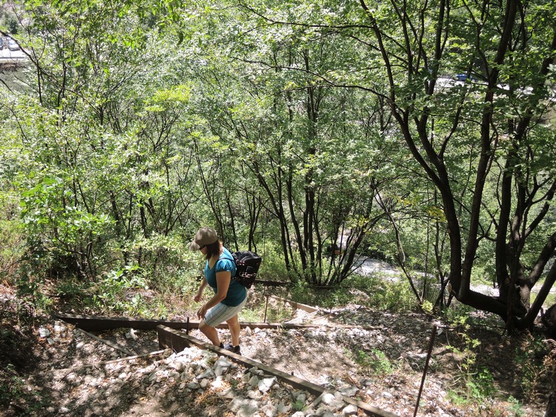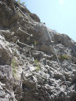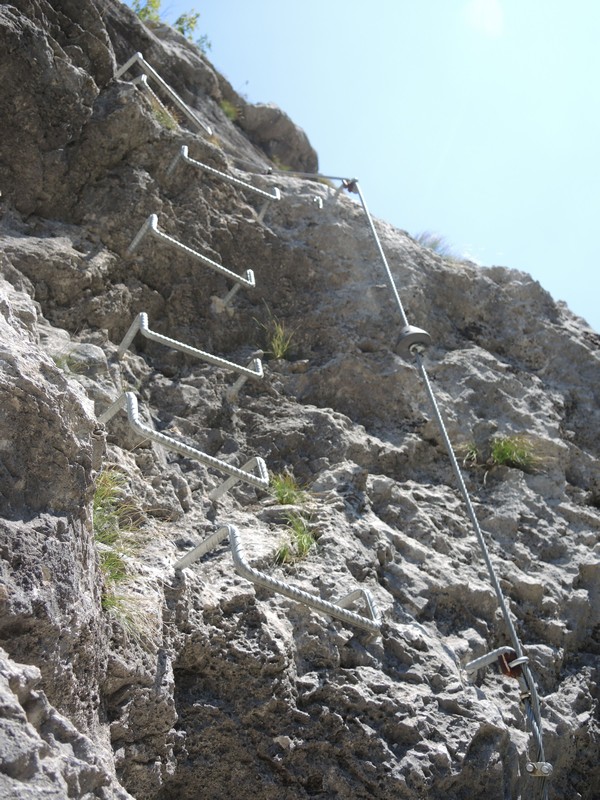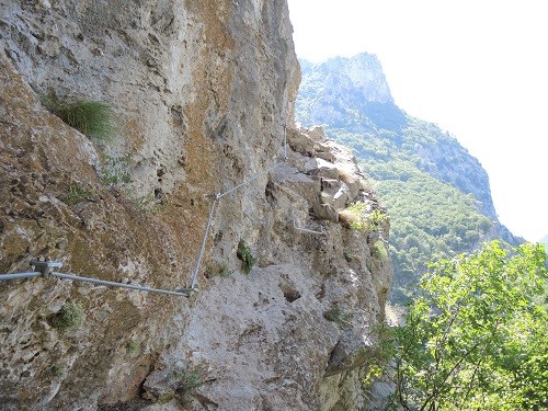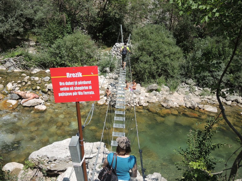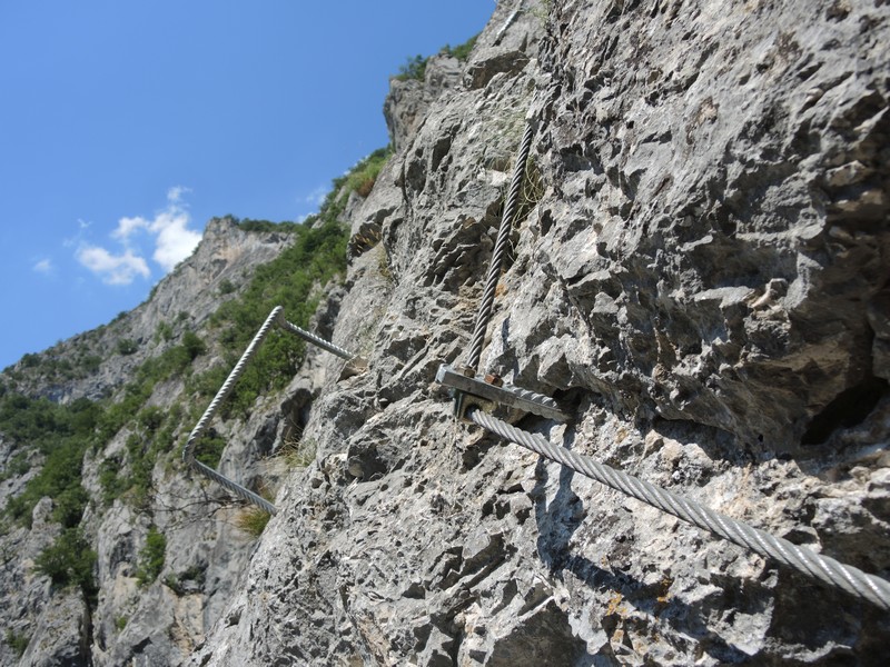 Der Klettersteig beginnt etwa 2,5 Kilometer nach dem Ortsende. Ein großes Hinweisschild bei einer Parkmöglichkeit lässt ein Verfehlen fast nicht zu. Über eine Stahlseilbrücke wird der tosende Bach gequert. Nach geht es kurz rechts weiter und etwa 50 Höhenmeter erfolgt der Zustieg über einen Pfad zum eigentlichen Ausgangspunkt. Ab dort führt der Klettersteig mal dem Gelände folgend, mal auch über künstliche Leitern direkt bergauf. Die Bilder der Galerie sind hierbei aussagekräftiger. Für erfahrene Klettersteiggeher steht wohl mehr die Landschaft im Vordergrund. Viel schwerer als eine Hand voll B-C Stellen wird der Steig nicht. Nach etwa 45-60 Minuten wird das Ende des Steiges erreicht. Unweit davon befindet sich eine Rastbank mit Blick auf Peja.