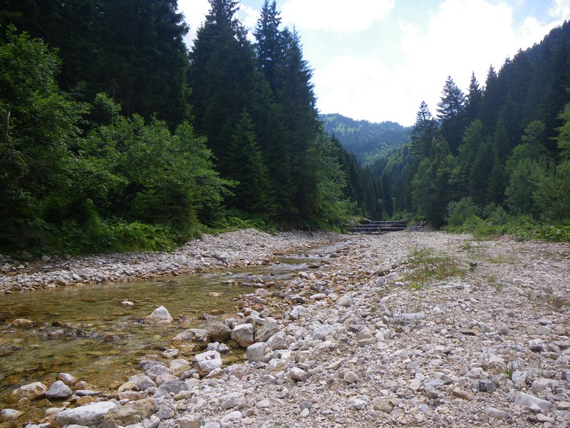 Mit den Menschenmassen geht es nun noch circa 20 Minuten flach taleinwärts, wo man nun die Möglichkeit hat direkt zur Wirtsalm zu gehen oder am breiten Bachbett mit etwas mehr Ruhe zu verweilen.